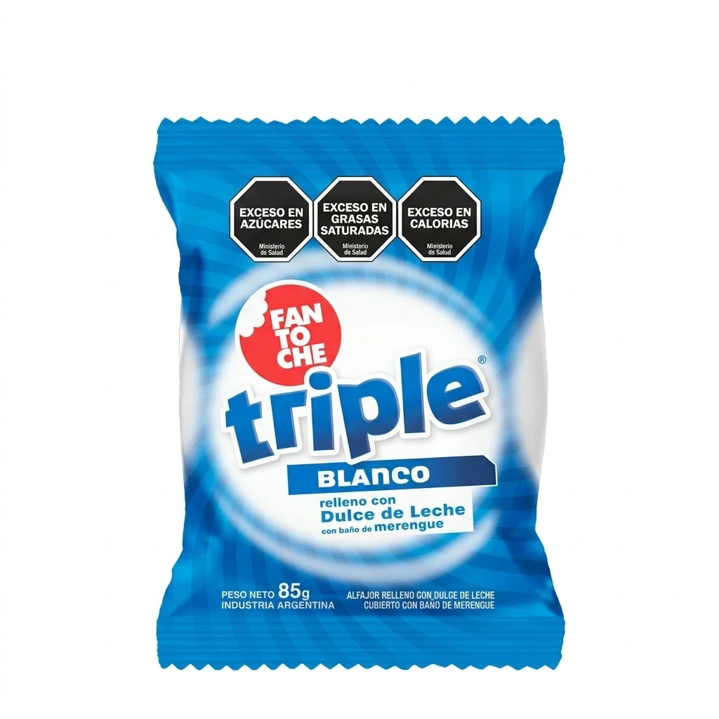 El Fantoche Blanco x 24 unidades es un alfajor triple de alta calidad con cobertura de merengue blanco. Ofrece una textura suave y cremosa única en el mercado.